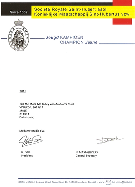 Das ist Toffeys zweite Championurkunde-er ist belgischer Jugendchampion !