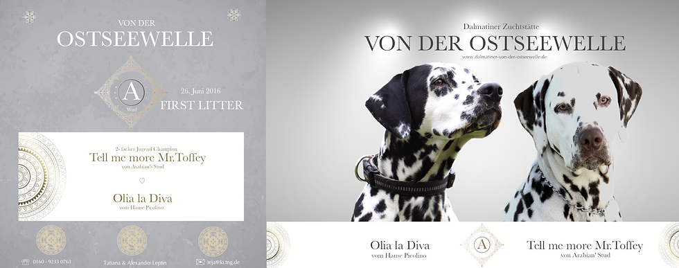 Der A - Wurf von der Dalmatiner Zuchtstätte Von der Ostseewelle wird am 26.06.2016 erwartet.